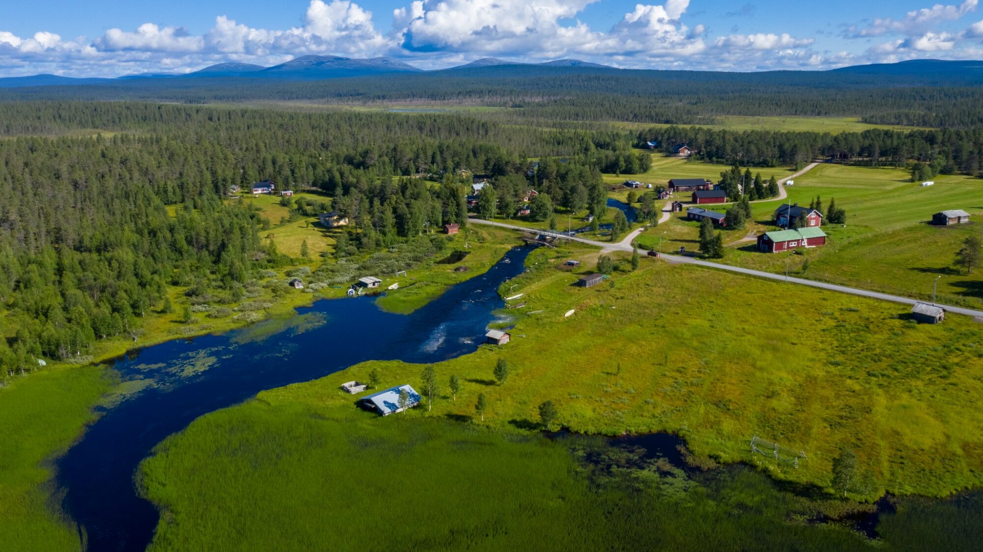 Cabins nestled in the peaceful Lapland wilderness