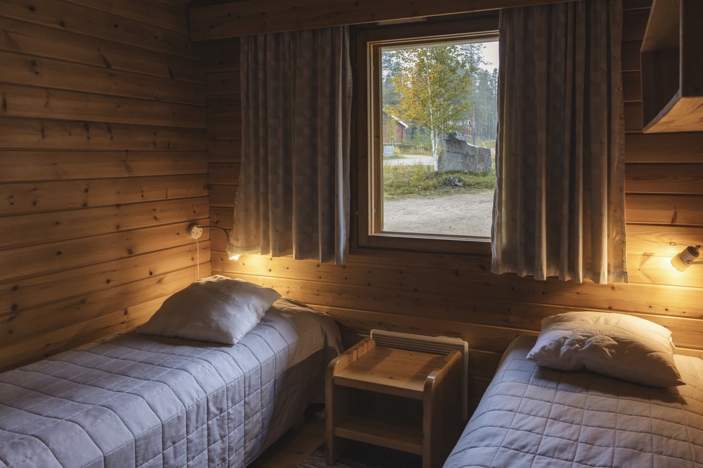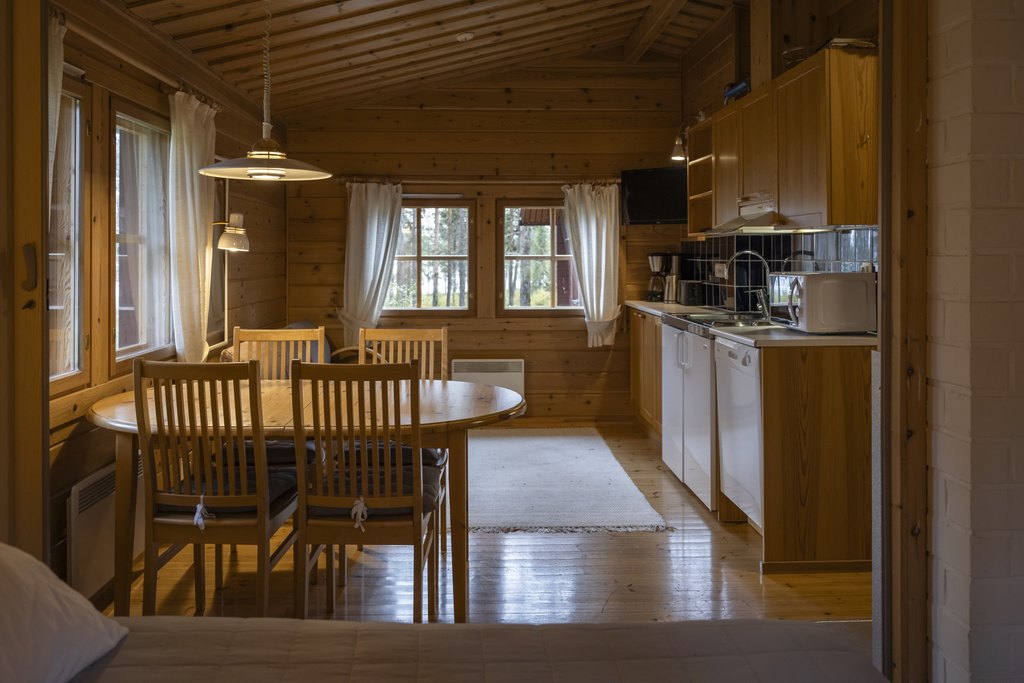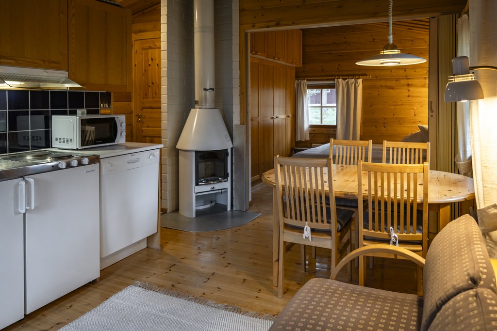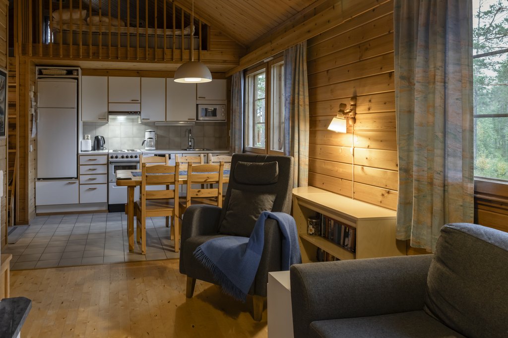 Mökissä on makuualkovi kahdella vuoteella sekä vuodesohva yhdelle aikuiselle tai kahdelle lapselle. Oman saunan lämpö ja mökin rauhallinen tunnelma tukevat rentoutumista retkipäivän jälkeen. Useimmissa mökeissä on takka, joka lisää viihtyisyyttä iltoihin.